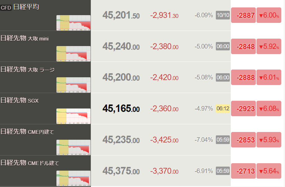 でも、ダウが800ドル下がったのは喜んでばかりもいられない。なんと日経平均先物がヤバイ。