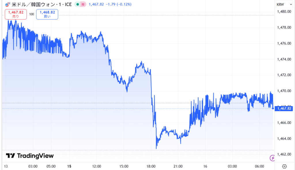 これを受け、韓国ウォンは当日夜間の取引で1ドル=1479.9ウォンまで値下がりし、1ドル=1477.0ウォンで取引を終えた。これは4月8日(1ドル=1479.0ウォン)以来のウォン安ドル高水準。