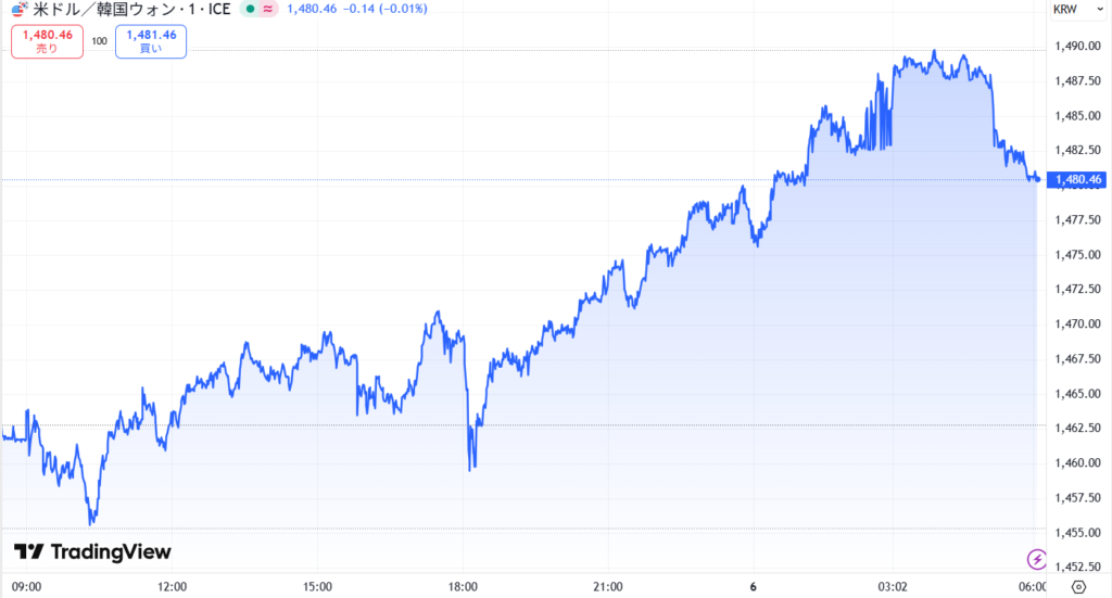 まさか3日連続で朝からウォンニャス速報を造ることになるとは、予想していたがイラン戦争という地政学的リスクで超ドル高になっている。すでにウォンニャス速報で紹介したがウォンが前人未踏の1500突破した。